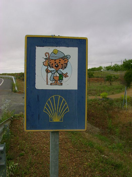 L'autoroute à pélerins avec les Un exemple de signalétique sur la Méseta