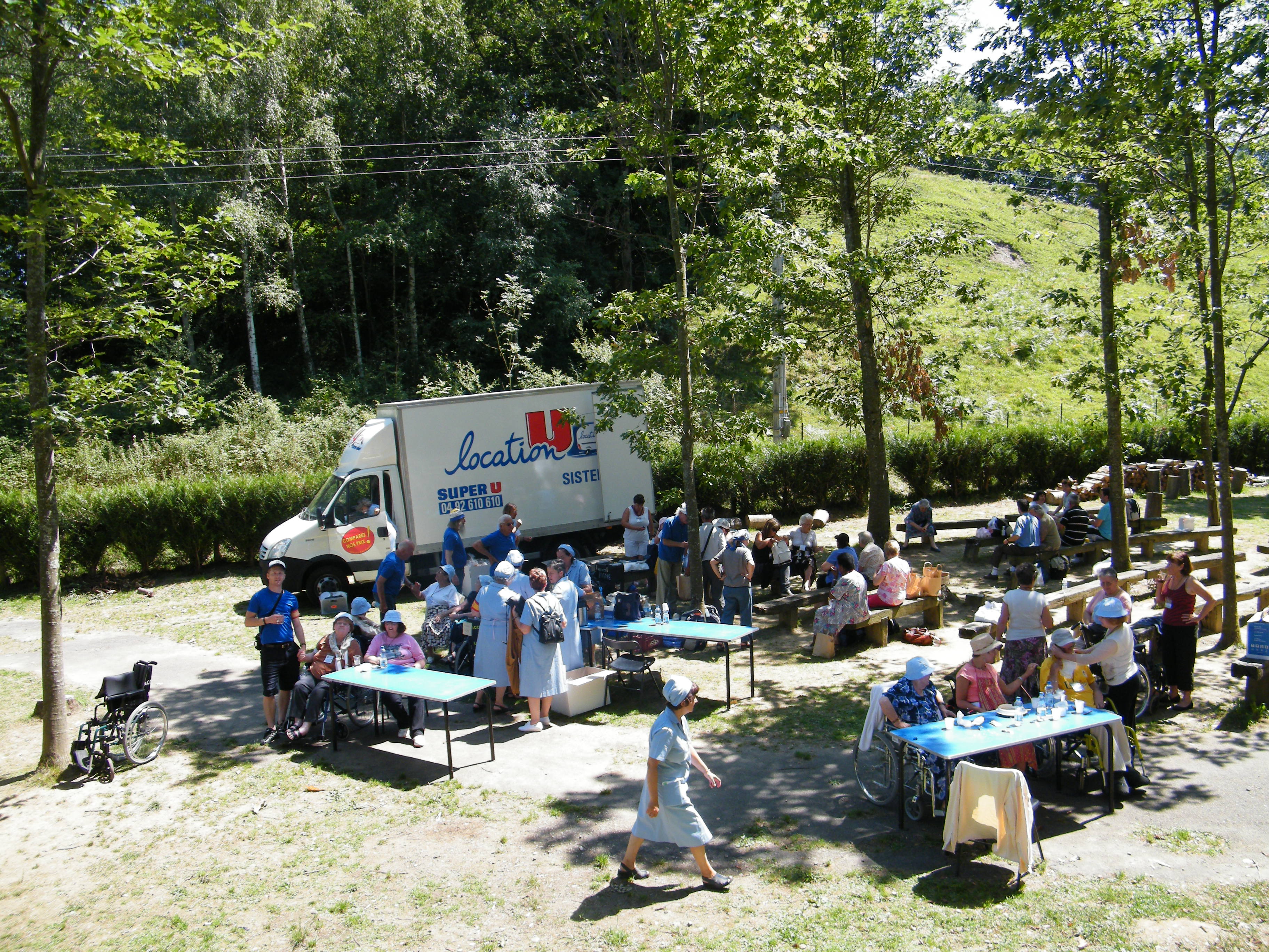 Après cette superbe célébration a eu lieu le départ pour un pique nique très convivial, à la Cité St Pierre, en présence de notre Evêque, Monseigneur LOIZEAU, trois prêtres du diocèse, Le Père Wojtech , le père Gilbert Mayenc, le père Christian Vian, directeur des pèlerinages, les Pitchouns, les Ados, les Jeunes, les Hospitaliers, les Malades, les Pèlerins de la Cité St Pierre et les Pèlerins en Hôtels.